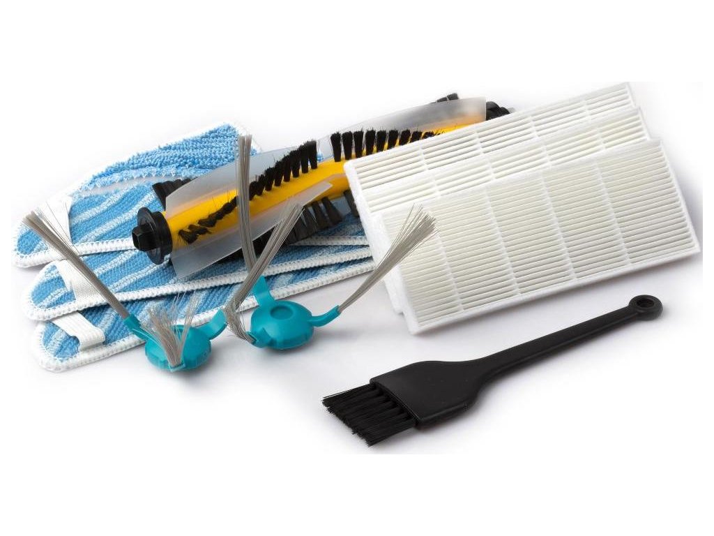 1 pár bočných kief, 1 stredová kefa, 3 handričky na vytieranie, 3 súpravy hepa filtrov, 1 čistiace