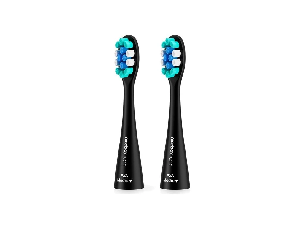 Souprava dvou náhradních hlavic Medium k sonickým zubním kartáčkům Niceboy ION Sonic a Niceboy ION SmartSonic. Hlavice Medium se střední tvrdostí vláken je ideální pro osoby se zdravými zuby i dásněmi.