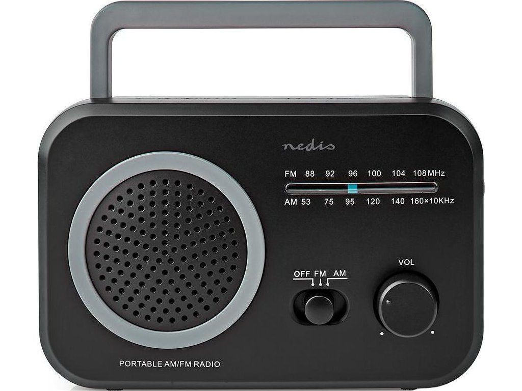 Nedis RDFM1330GYPřenosné rádio s výkonem 1,8 W dokáže poskytovat skvělý zvuk. K dispozici je analogové ladění v rámci FM/ AM pásem a 3,5 mm výstup pro připojení sluchátek. Rádio si navíc díky rukojeti s sebou snadno můžete vzít kamkoliv. Stačí do něj vložit 4x AA baterie (nejsou součástí balení) a poslouchat hudbu na cestách. Jsou-li baterie vybité, lze využít síťové napájení a užít si nepřetržitou radost z poslechu.