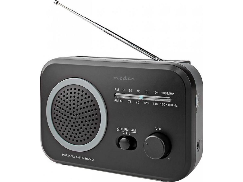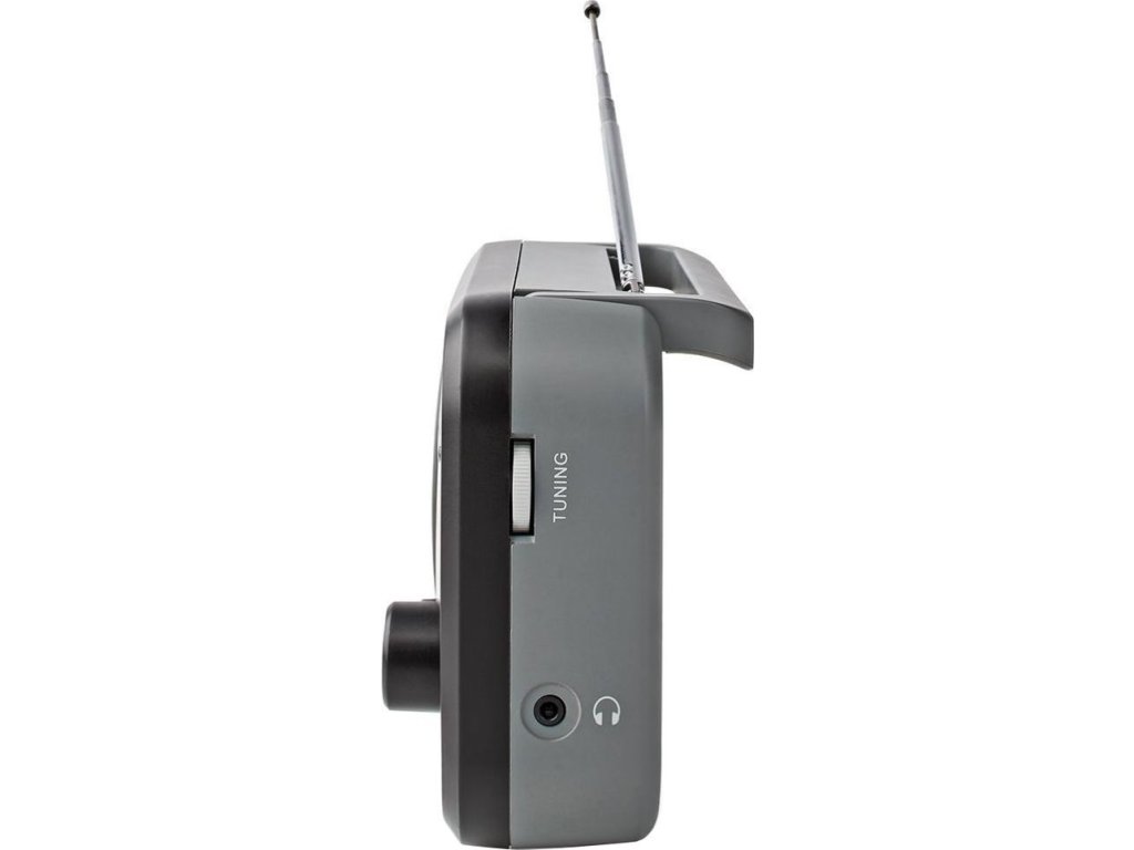 NEDIS přenosné rádio/ AM/ FM/ napájení z baterie/ síťové napájení/ analogové/ 1.8 W/ výstup pro sluchátka/ černo-šedé