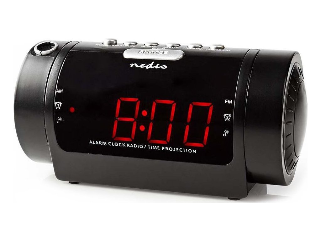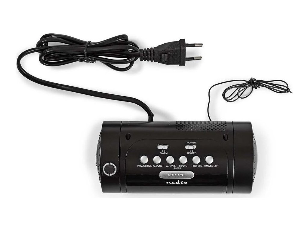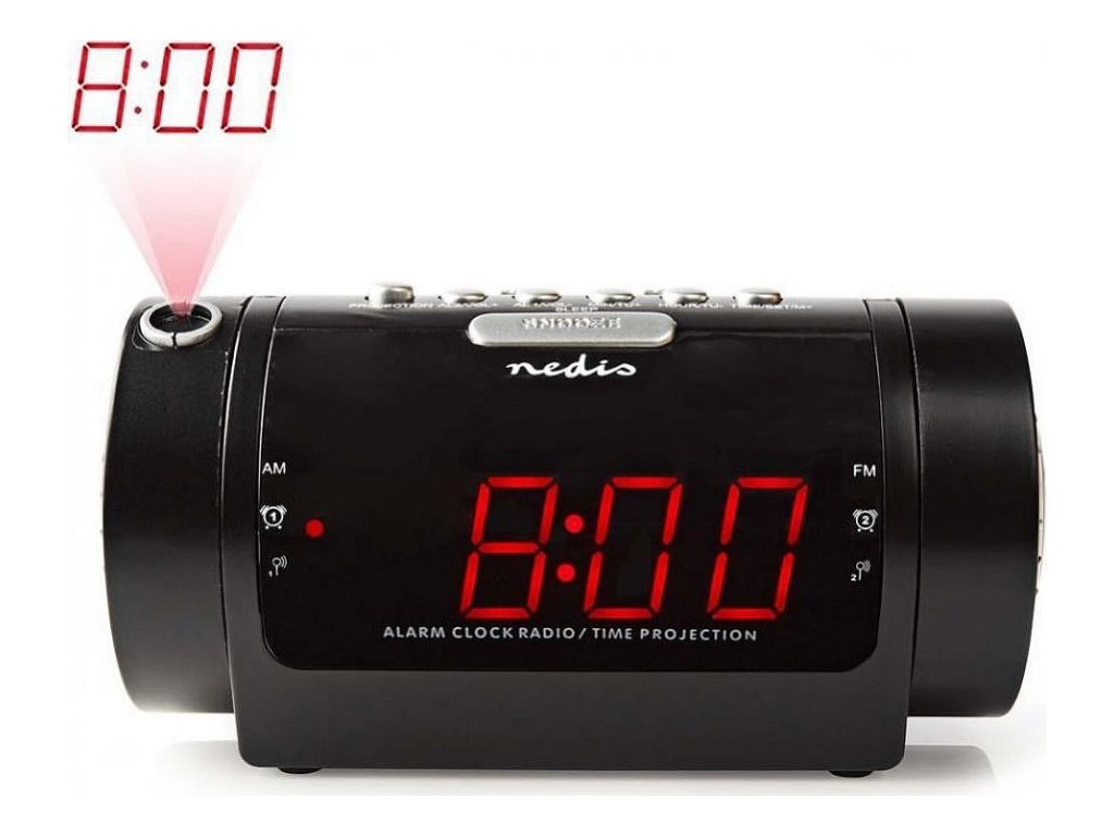 NEDIS digitální budík s rádiem/ LED displej/ promítání času/ AM/ FM/ odložené buzení/ časovač vypnutí/ 2 alarmy/ černý