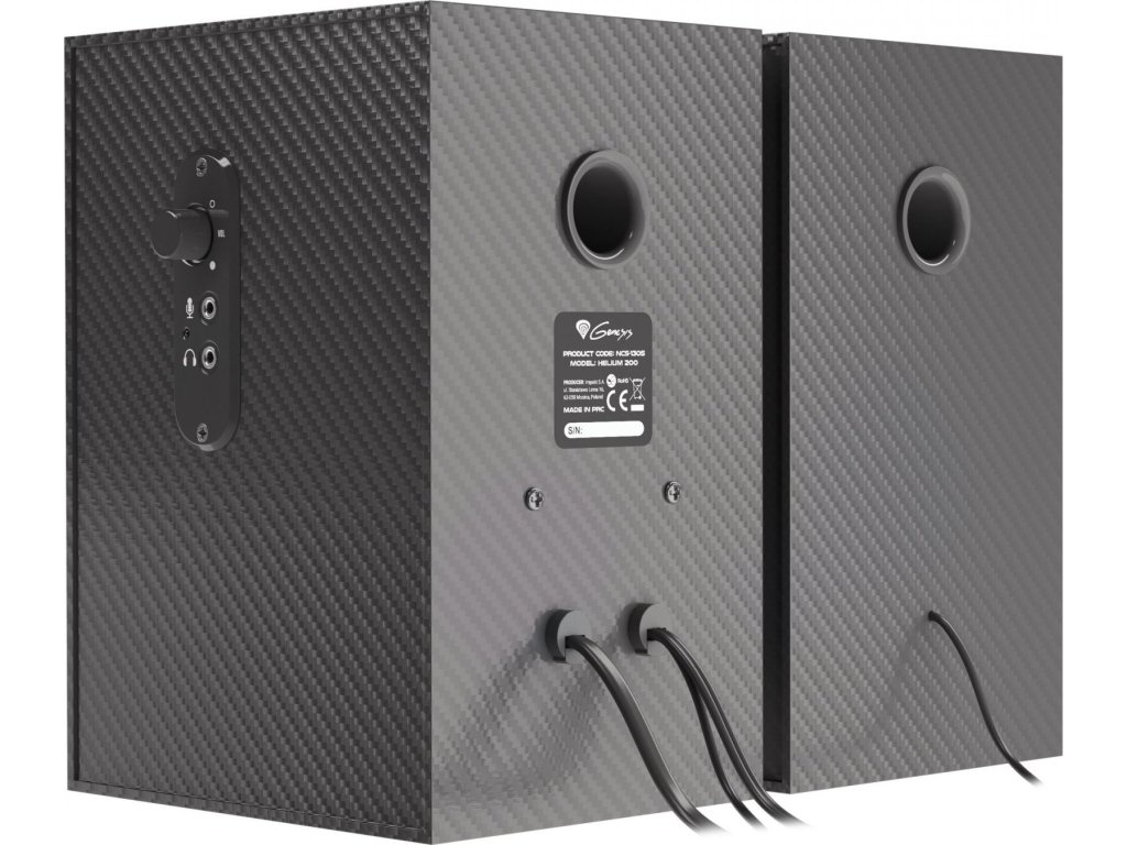 Genesis Helium 200 jsou stereofonní reproduktory s výkonem 20W RMS, které vás okouzlí nejen vysokou kvalitou zvuku, ale i moderním designem, který zvýrazňuje karbonová povrchová úprava. Reproduktory obsahují klasický obdélníkový tvar a dřevěné tělo, což je základem kvalitního zvuku.