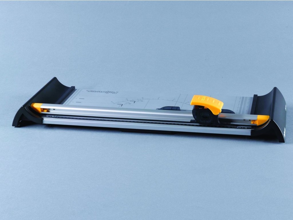 Řezačka s výměnnými pracovními nástroji. Vedle základního rovného řezu je k dispozici rýhovací kolečko, řez ve tvaru vlnky a přerušovaný (perforační) řez pro snadné odtrhávání papíru. Místo řezu je naznačeno LED svítivou diodou. Řezné nástroje jsou uloženy v bezpečnostních kazetách a jejich výměna je velice snadná.