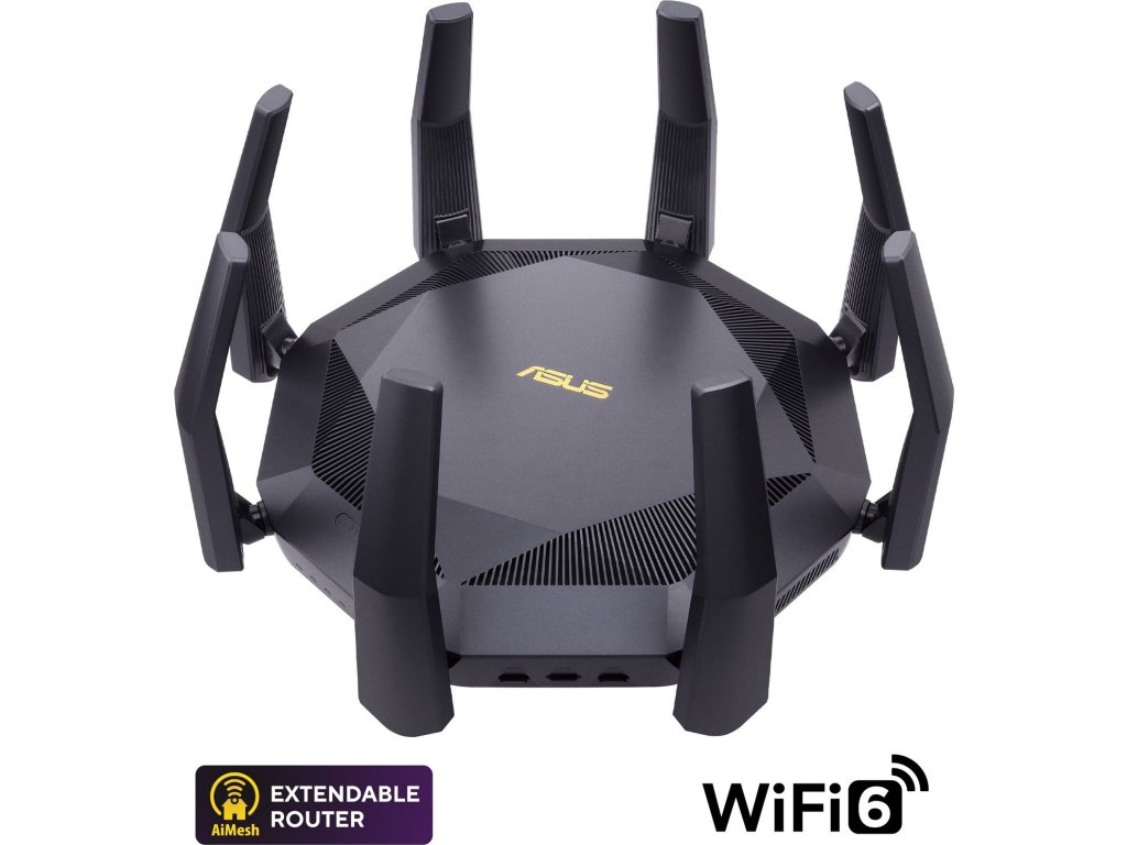 Asus RT-AX89X dvoupásmový směrovač AX6000 Dual Band WiFi 6 (802.11ax) podporující technologii MU-MIMO a OFDMA, se síťovým zabezpečením AiProtection Pro poháněným technologií Trend Micro a Adaptive QoS.