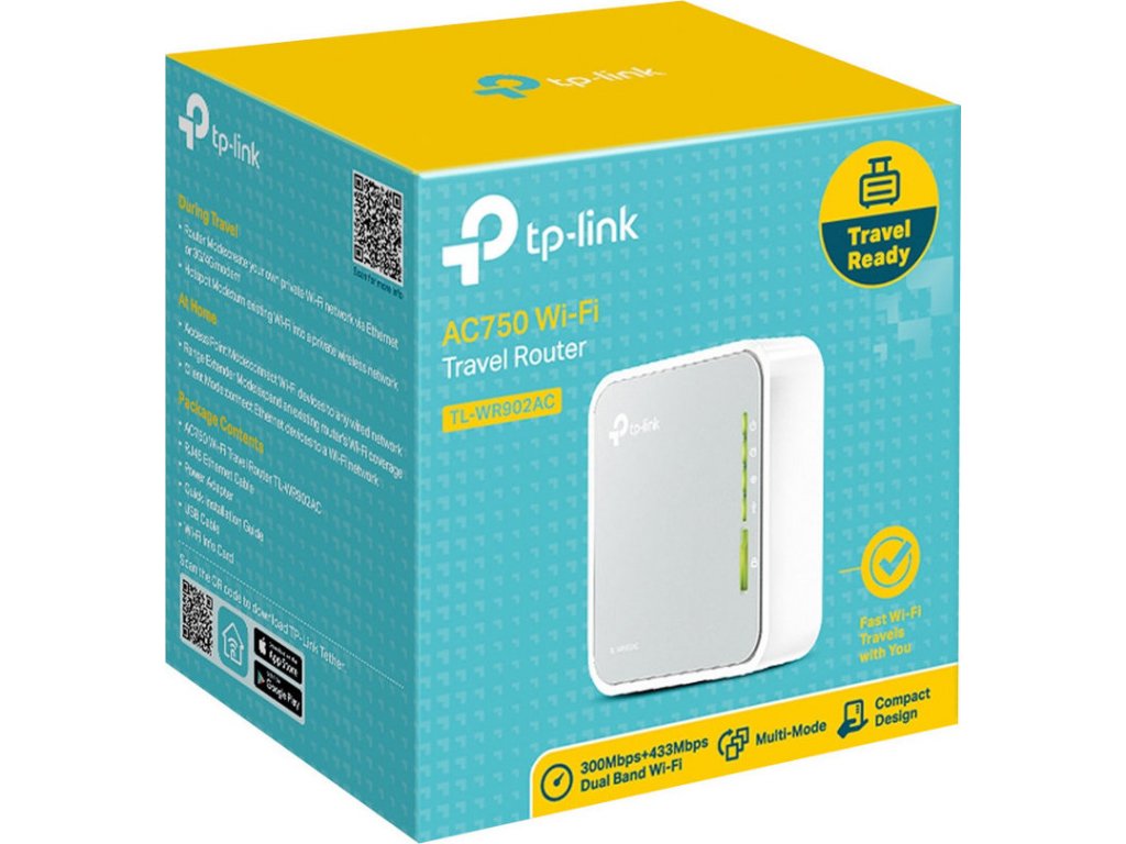 Díky kompaktnímu designu vhodnému na cesty je router TL-WR902AC dostatečně malý na to, abyste jej strčili do kapsy a měli jistotu, že můžete mít přístup k internetu všude, kam se vydáte. Díky napájení přes micro USB port a vestavěnému adaptéru je ideálním řešením pro cestovatele, studenty a pro všechny, kdo žijí na cestách.