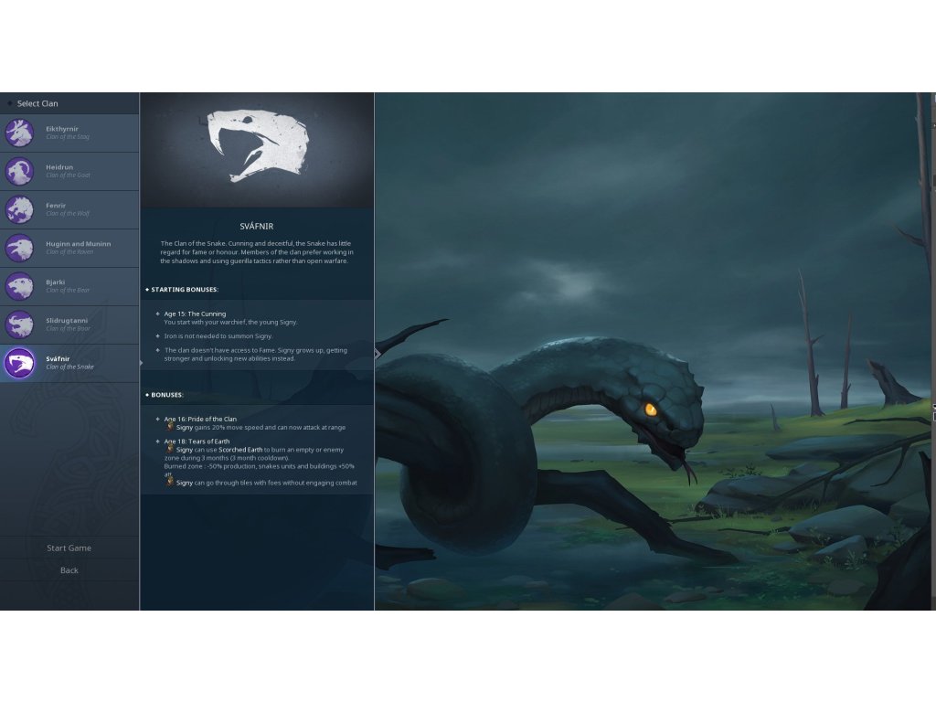 Zažijete úplně nový způsob hraní hry Northgard: Klan Snake nemá žádnou čest a proto nemůže ochutnat slávu vítězství! Alenepodceňujte jeho potenciál ...