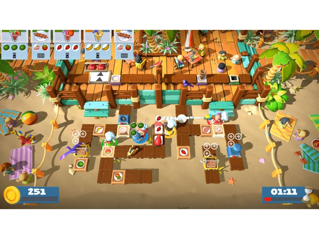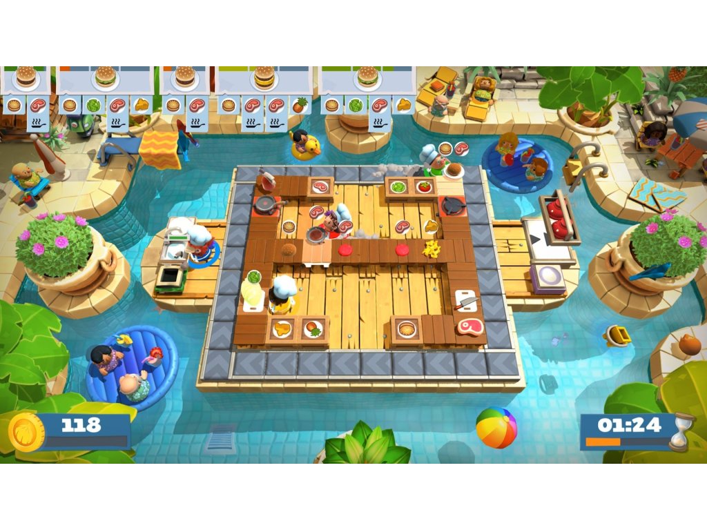 Vyzvěte jiného hráče k souboji na dvou úrovních nebo společně čelte hladovým davům během 12 nových, šťavnatých úrovníchkampaně. Pracujte společně, použijte vodní pistoli k umytí nádobí, nebo zařiďtevodní válku a plavte v chaosu!