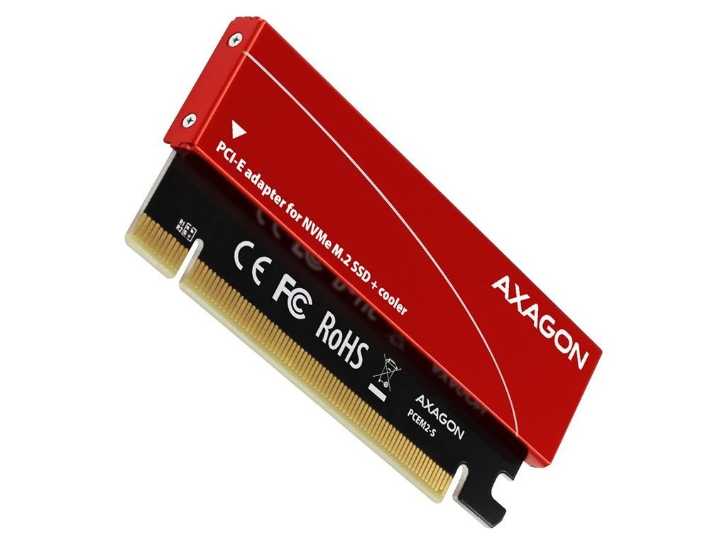 AXAGON PCEM2-S, PCIe x16 - M.2 NVMe M-key slot adaptér, kovový kryt pro pasivní chlazení
