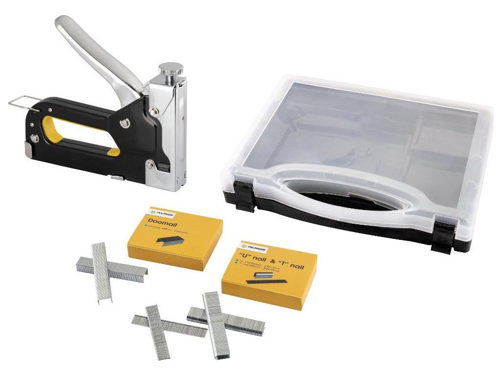 ktorýmkoľvek druhom sponiek pre Vašu prácu v dielni. Súčasťou balenia je okrem sponkovačky, tiež praktický plastový kufrík s tromi
