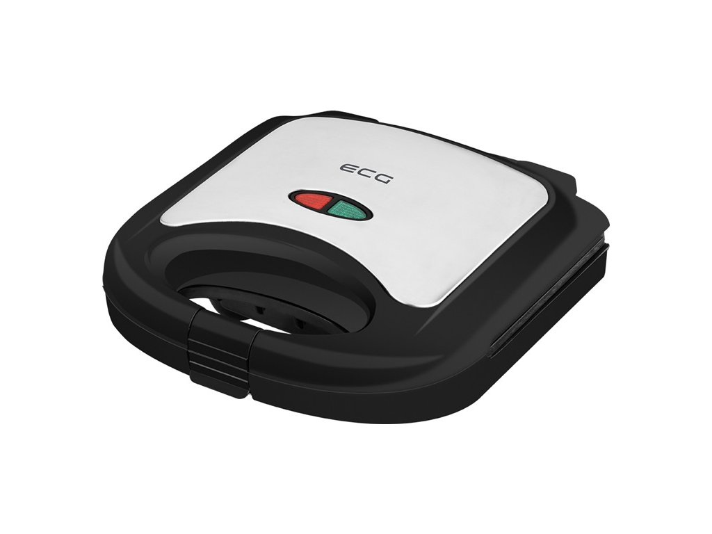 pro přípravu 2 čtvercových sendvičů, černá barva v kombinaci s nerezovou ocelí, nepřilnavá povrchová úprava pečicích ploch, tepelně izolovaná rukojeť, indikátor připojení k síťové zásuvce / připravenosti k pečení, příkon 750W
