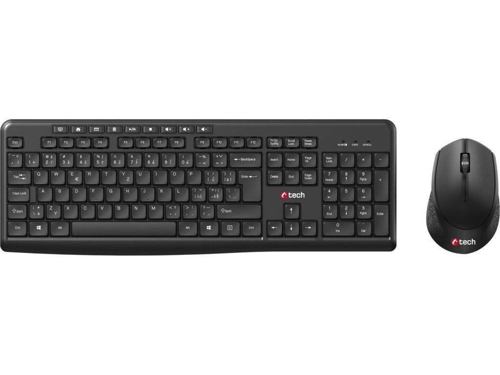 C-TECH klávesnice s myší WLKMC-04, Bezdrátový set 2.4GHz, CZ, Černá