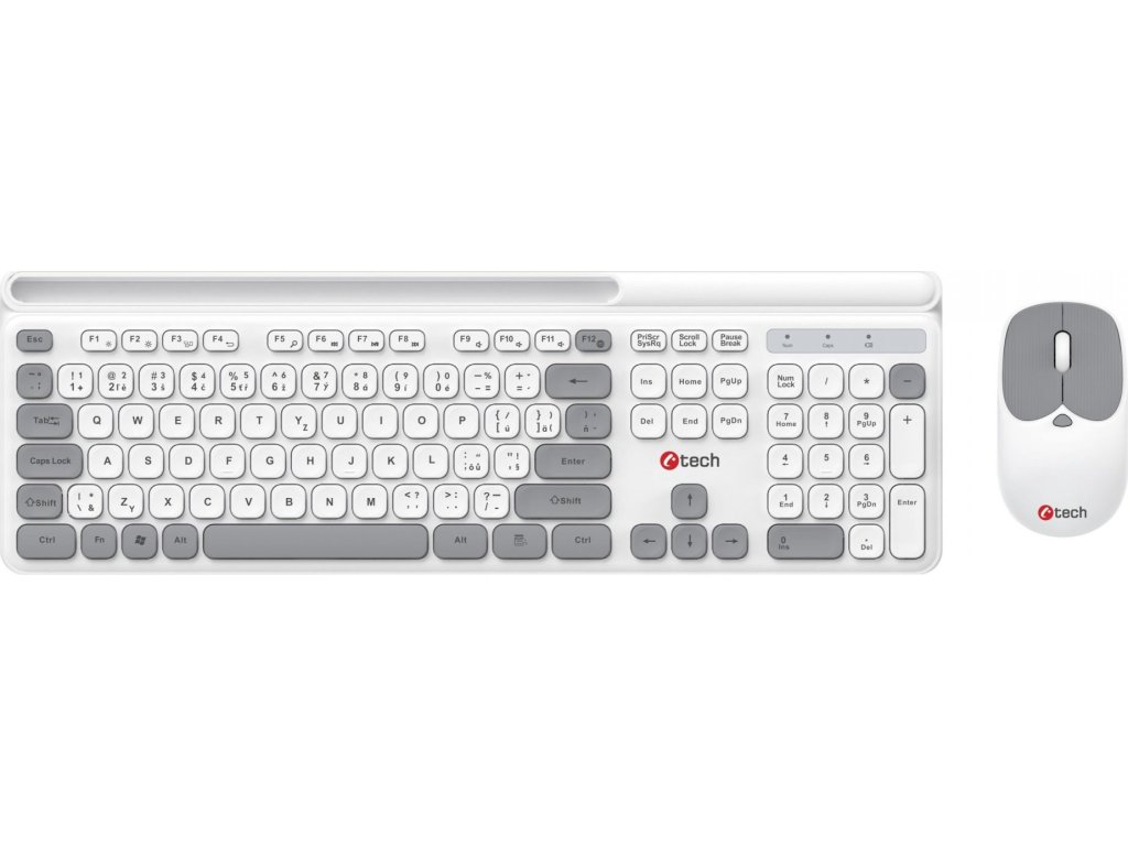 C-TECH klávesnice s myší WLKMC-05W, Bezdrátový set 2.4GHz, CZ, Bílá