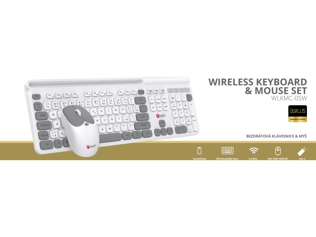 C-TECH QUALLIS WLKMC-05 – Bezdrátový set klávesnice a myši s prémiovým designem a praktickými funkcemi