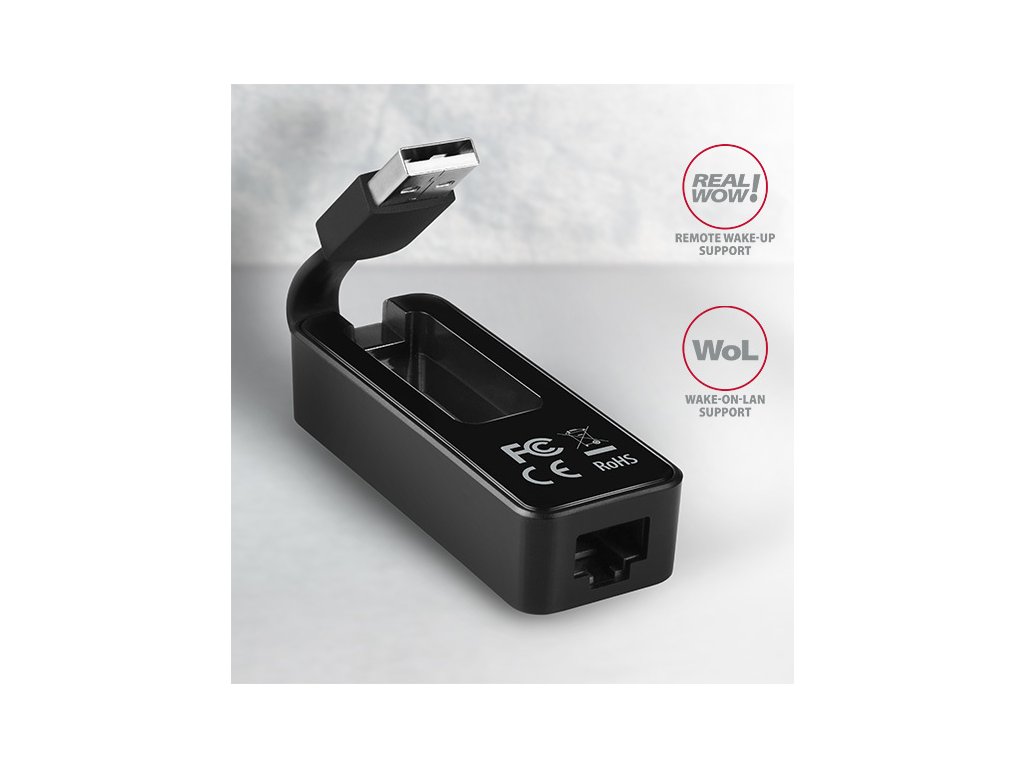 USB ehernet adaptér díky jednoduché instalaci snadno doplní Vaše zařízení o chybějící síťový RJ-45 konektor, přidá další síťovou kartu nebo nahradí původní nefunkční síťové připojení.