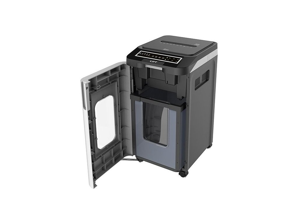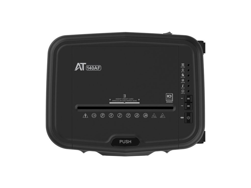 AT skartovačka AT-350AFKvalitní skartovací stroj s automatickým podavačem umožňuje postupné skartování až 350 listů. Možná je i přímá skartace až 11 listů. Je vhodný pro skartaci dokumentů o šířce až 240 mm. Stroj je standardně vybaven automatickým systémem start/stop hlídaným foto buňkou, LED displejem, zpětným chodem a pohotovostním režimem proti přetížení stroje. Příležitostně lze skartovat sešívací svorky, sponky, CD i kreditní karty. Lehce vyprázdnitelná odpadní nádoba má objem 53 l. Praktická pojezdová kolečka usnadňují manipulaci.