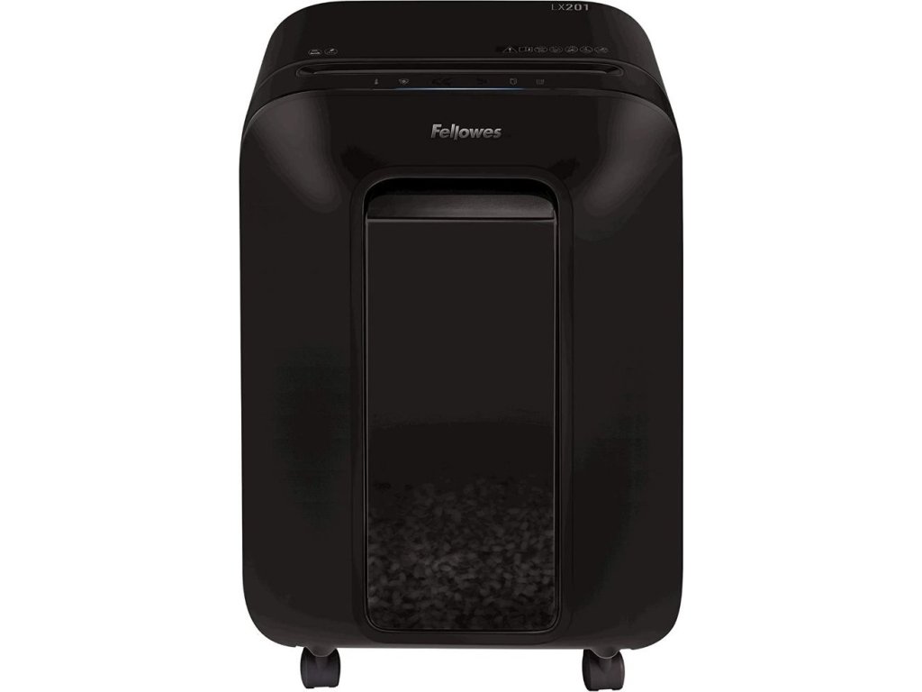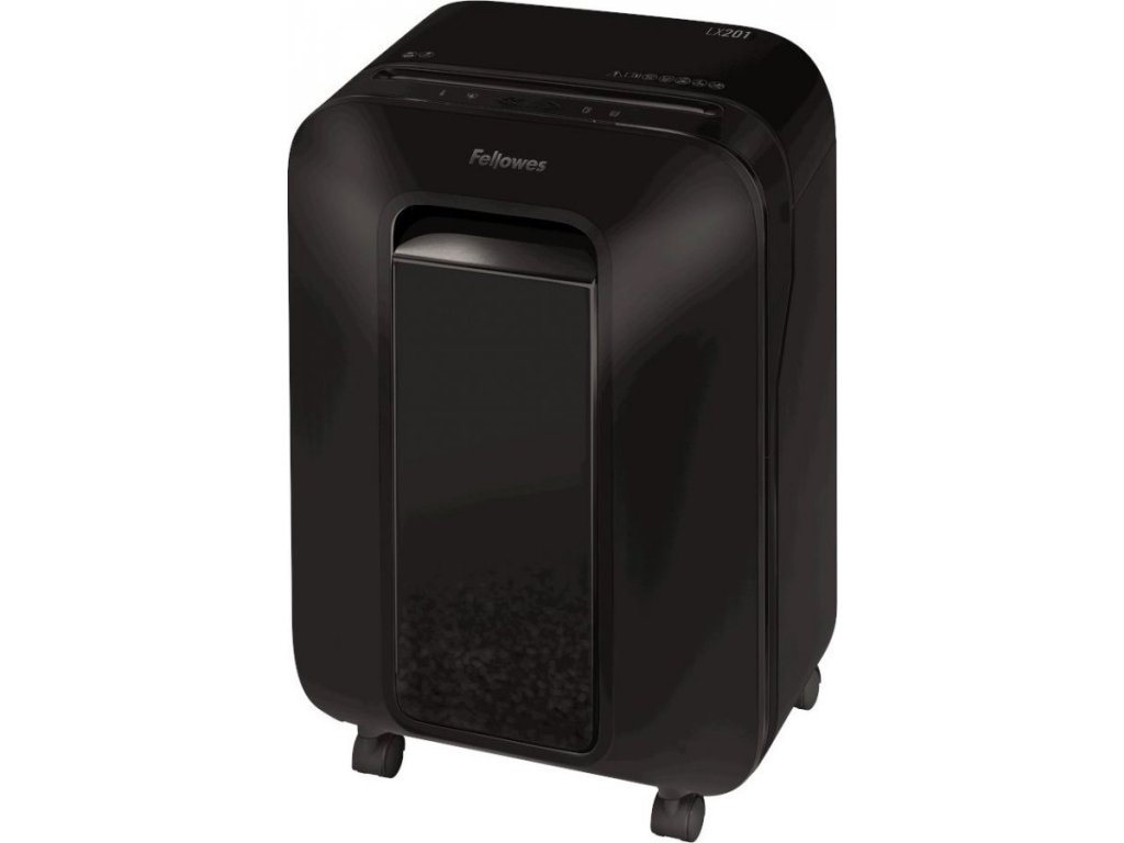 Fellowes LX 201Skartovačka s křížovým řezem. Dokáže pojmout až 12 listů papíru A4 najednou. Poradí si také s ničením platebních karet, malých sponek a svorek v dokumentech. Technologie SafeSense automaticky zastaví skartovací stroj při dotyku rukou v oblasti vstupního otvoru. Díky funkci Sleep Mode se zařízení po 2 minutách nečinnosti automaticky vypne. Výsuvný přední koš s velkým průzorem umožňuje vizuálně kontrolovat míru zaplnění.