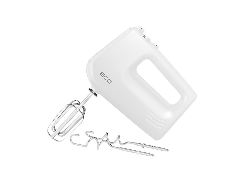 5 stupňová regulace otáček, TURBO tlačítko, tlačítko pro vyjmutí metel a háků, 2 ks šlehacích metel, 2 ks hnětacích háků, příkon 400 W