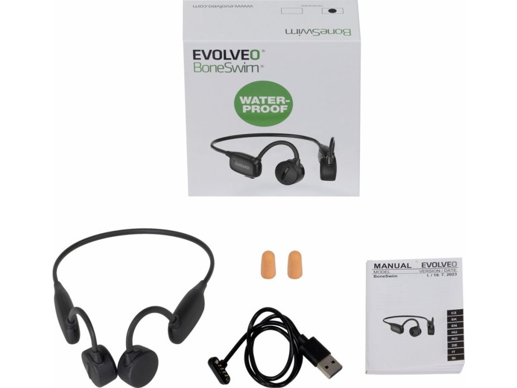 EVOLVEO BoneSwim Pro MP3 32GB, bezdrátová sluchátka na lícní kosti, černé