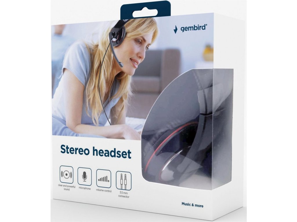 GEMBIRD sluchátka s mikrofonem MHS-001, černá lesklá