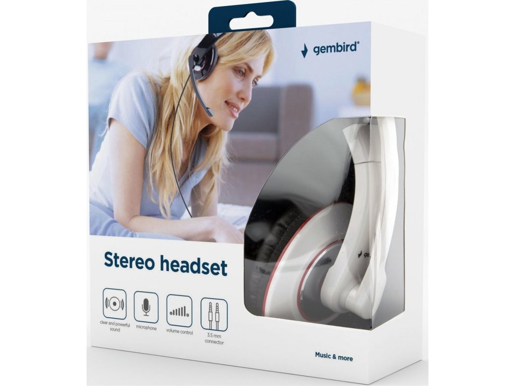 GEMBIRD sluchátka s mikrofonem MHS-001GW, bílá lesklá