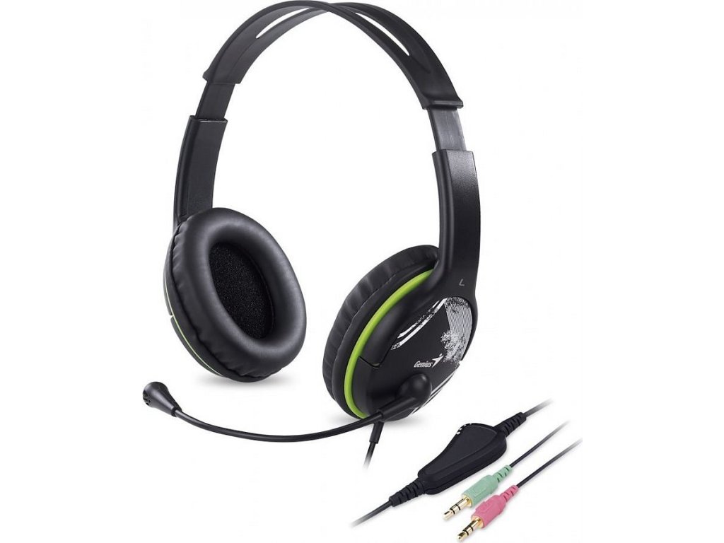 GENIUS sluchátka s mikrofonem HS-400A, černozelená