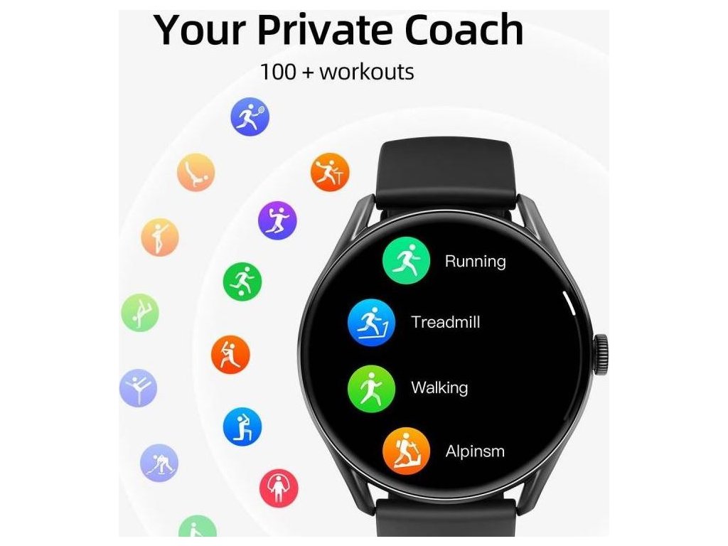 Displej: 1,43" dotykový AMOLED, rozlišení 466 x 466, obnovovací frekvence 60 Hz