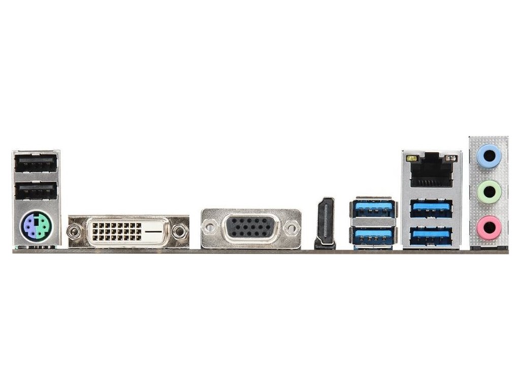| Vstupy/výstupy na zadnom paneli | - 1 x port PS/2 pre myš/klávesnicu - 1 x port D-Sub - 1 x port DVI-D - 1 x port HDMI - 2 x USB 2.0 Porty (podporuje ochranu proti ESD) - 4 x USB 3.1 port Gen1 (podporuje ochranu proti ESD) - 1 x RJ-45 LAN port s LED diódou (ACT/LINK LED a SPEED LED) - HD audio konektory: Line in / Front Speaker / Microphone |