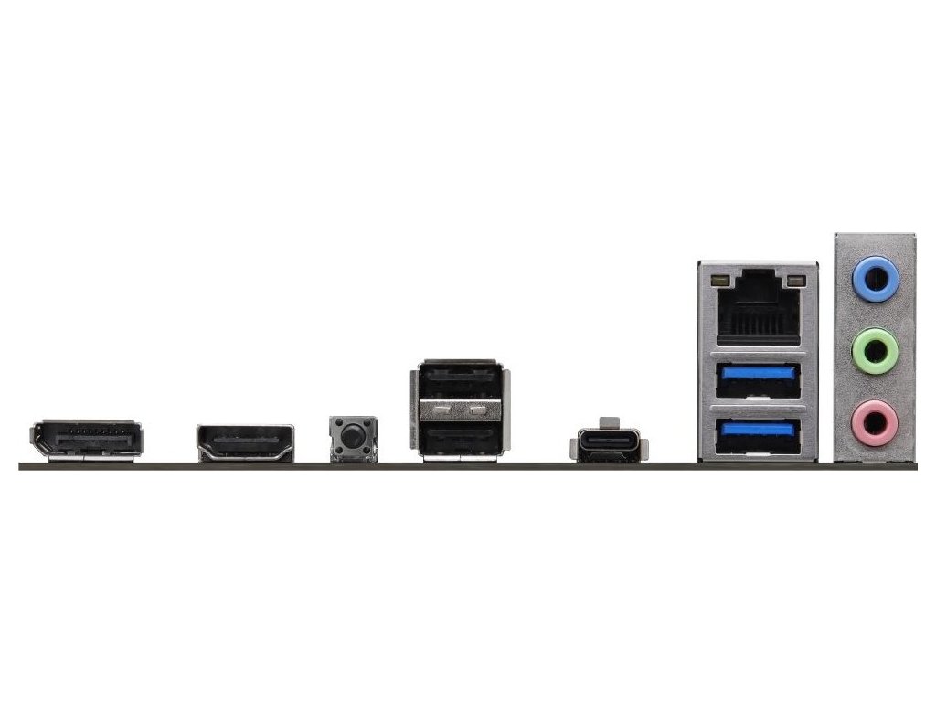 | Vstupy/výstupy na zadnom paneli | - Držiak antény - 1 x port PS/2 pre myš/klávesnicu - 1 x port D-Sub - 1 x port HDMI - 1 x DisplayPort 1.4 - 1 x USB 3.2 Gen1 port typu A (podporuje ochranu proti ESD) - 4 x USB 3.2 porty typu A Gen1 (rozbočovač ASMedia ASM1074) (podporuje ochranu proti prepätiu) - 1 x USB 3.2 Porty typu C Gen1 (podporuje ochranu proti prepätiu) - 2 x USB 2.0 portov (podporuje ochranu proti ESD) - 1 x RJ-45 LAN port s LED diódou (ACT/LINK LED a SPEED LED) - HD audio konektory: Line in / Front Speaker / Microphone |