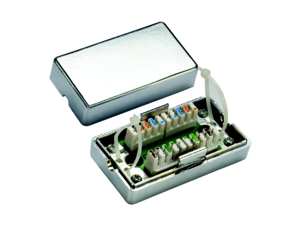 Stíněná spojka cat.5e pro spojení dvou kabelů pomocí zářezového pole.