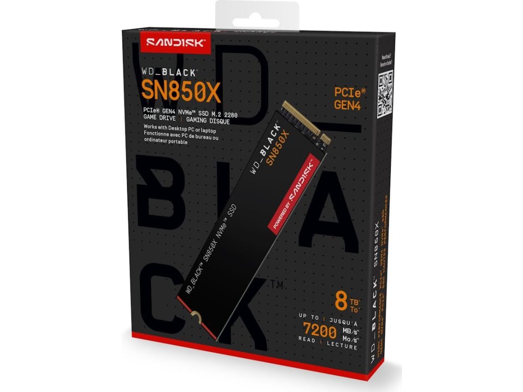 WD BLACK SSD NVMe 8TB PCIe SN850X Powered by SanDisk, Gen4, (R:7200, W:6600MB/s)