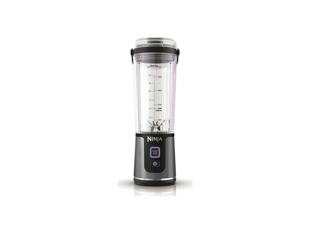 přenosný mixér; plastová nádoba 0,5 l; technologie Ninja Blast™: rovnoměrné rozmixování; vhodné pro přípravu smoothie, zeleninového pyré, zmrzliny nebo na drcení ledu; přenosná láhev; plastové víko; nabíjecí baterie o výkonu 7,4 V; kompatibilní s USB-C