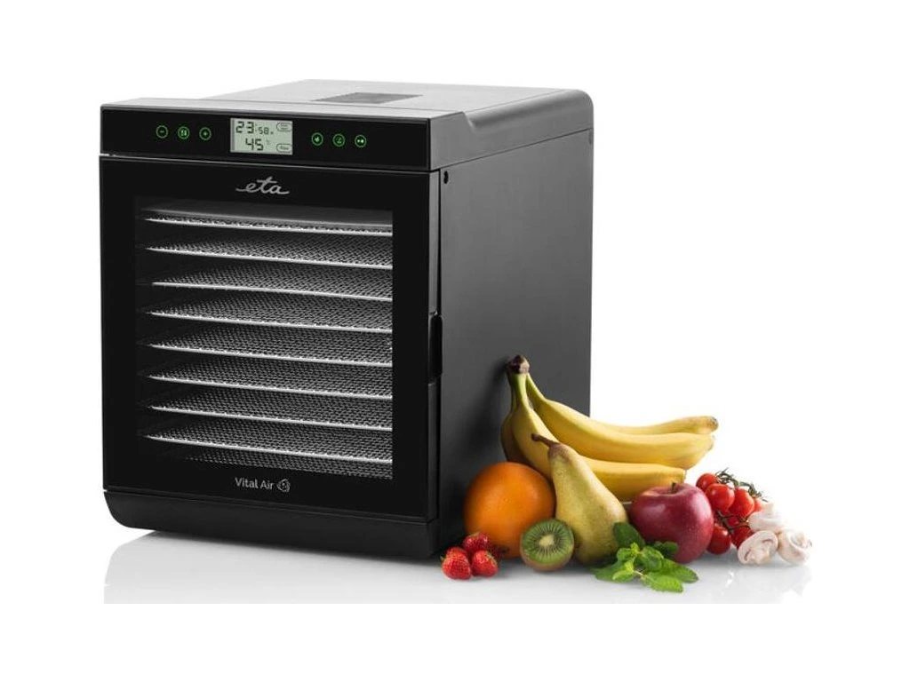 PŘÍKON: 650W, Počet nerezových sušících sít: 10 (2 kusy speciálních plastových sušicích plat pro drcené potraviny), Rozměry síta: 33 x 30,5cm, Teplota nastavitelná v rozsahu 35 - 70 °C, Časovač, LCD displej se zobrazením stavu přípravy, Dotykové ovládání, Zvuková signalizace, Ochrana proti přehřátí,