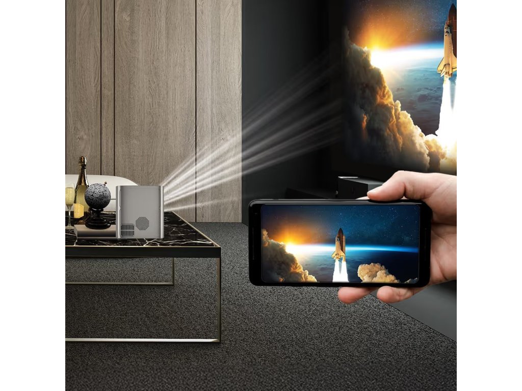 Miniaturní přenosný projektor s HD rozlišením 1280 × 720 bodů nabízí jas 180 ANSI lumenů a kontrast 1000 : 1. Tento projektor vám umožní proměnit jakoukoliv zeď nebo plátno na obří obrazovku s úhlopříčkou až 120". Díky technologii Bluetooth lze přehrávat audio z projektoru pomocí bezdrátových reproduktorů či sluchátek. Je také vybaven funkcí bezdrátového streamování či zrcadlení obrazu ze smartphonů skrze Wi-Fi. Samozřejmostí je pak možnost přehrávání filmů, fotografií či hudby prostřednictvím USB portu. Ozvučení zajišťují stereo reproduktory s celkovým výkonem 6 W.