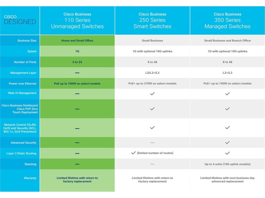 Nyní můžete mít vysoce výkonnou síť podnikové třídy s Cisco Business 110 Series Unamnaged Switches. Tyto cenově dostupné přepínače typu plug-and-play jsou ideální pro malé kanceláře, pracovní skupiny, oddělení a rostoucí kanceláře s omezeným IT know-how a podporou. Poskytují robustní síťové připojení, které splňují vaše obchodní požadavky, a také přidanou spolehlivost s pokročilými funkcemi, jako je Quality of Service (QoS), detekce smyčky a diagnostika kabelů, to vše v přepínači, který si můžete nastavit sami během několika minut. Přepínače řady Cisco Business 110 přinášejí vaší malé firmě osvědčenou spolehlivost a ochranu investic síťových řešení Cisco.