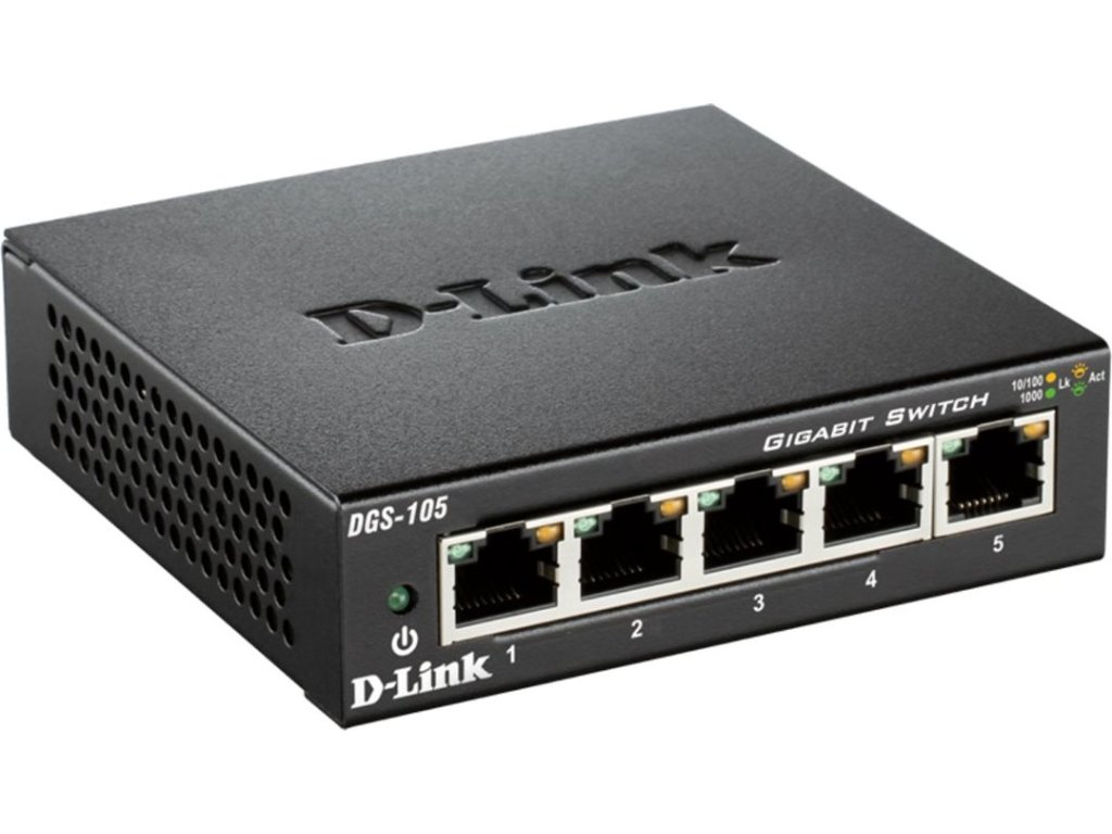 5portový gigabitový neřízený stolní přepínač DGS-105 nabízí ekonomický způsob pro malé a střední podniky a malé a střední podniky, jak těžit ze zvýšené šířky pásma gigabitového Ethernetu. Poskytuje pět gigabitových portů pro snadné rozšíření vaší sítě a rychlý způsob upgradu sítě na gigabitové připojení.