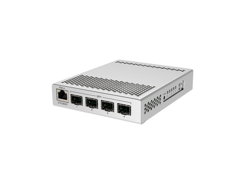 Cloud Router Switch 305-1G-4S+IN je operačním systémem SwOS či RouterOS poháněný 5-portový switch se čtyřmi SFP+ šachtami a jedním GB ethernet portem v desktop provedení.