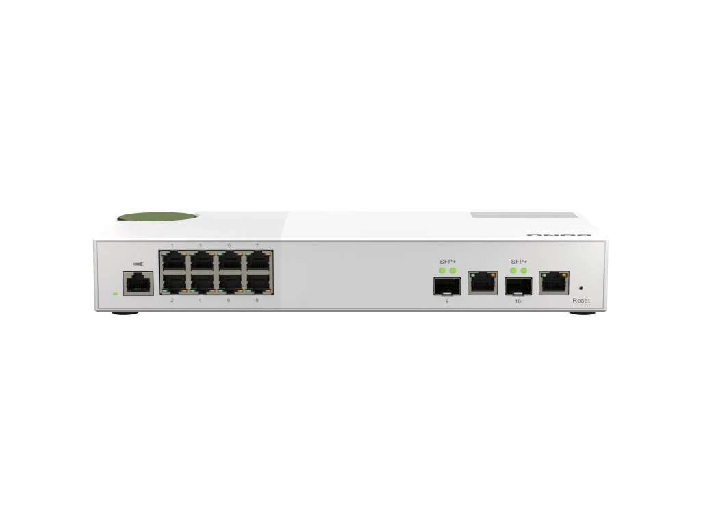 Zařízení QSW-M2108-2C je webově řízený přepínač úrovně 2 se dvěma kombinovanými porty 10GbE SFP+/RJ45 a osmi porty 2,5 Gigabit. Zařízení QSW-M2108-2C podporuje přepínání a správu sítě úrovně 2 (L2) prostřednictvím uživatelsky vstřícného webového rozhraní, nabízí flexibilní nasazení v hybridních vysokorychlostních síťových prostředích a poskytuje řešení pro správu sítě na základní úrovni, které zvládnou používat i ti, kdo nepatří mezi profesionály v oboru IT. Zařízení QSW-M2108-2C je kompatibilní s technologiemi 10GbE a NBASE-T a podporuje až pět rychlostí (10 G / 5 G / 2,5 G / 1 G / 100 M) pro zajištění vyšších přenosových rychlostí pomocí stávajících kabelů Cat 5e a 6a. Díky vysokému výkonu, uživatelsky přívětivé správě a stolnímu provedení umožňuje zařízení QSW-M2108-2C nákladově efektivní upgrade na síť 2,5GbE nebo 10GbE při optimalizaci šířky pásma a zajištění bezpečné údržby sítě.