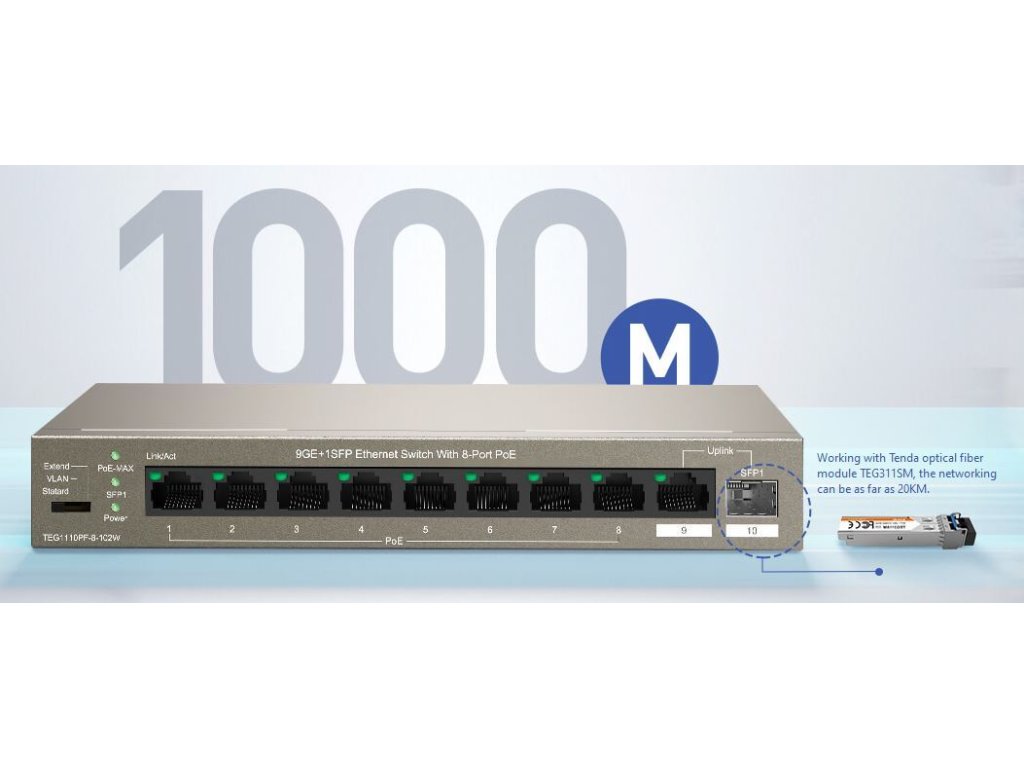 Tenda TEG1110PF-8-102W je vhodná jak do menších a středních firem, tak i do větších domácností.