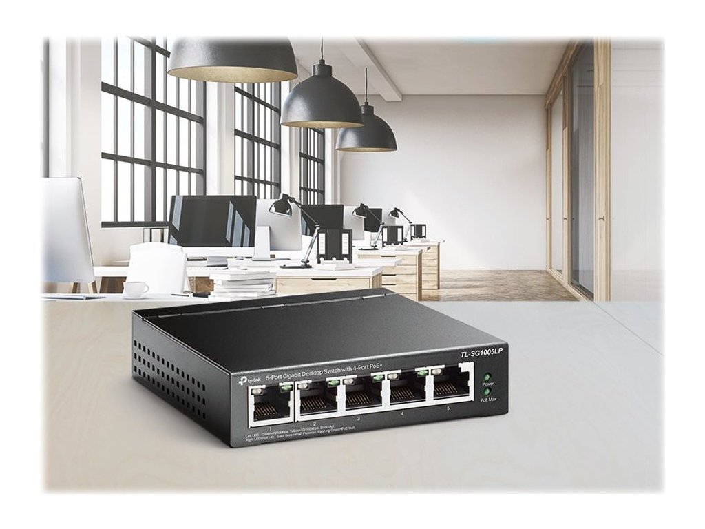 TL-SG1005LP - 5-portový gigabitový desktop switch s napájením přes PoE pro 4 porty.