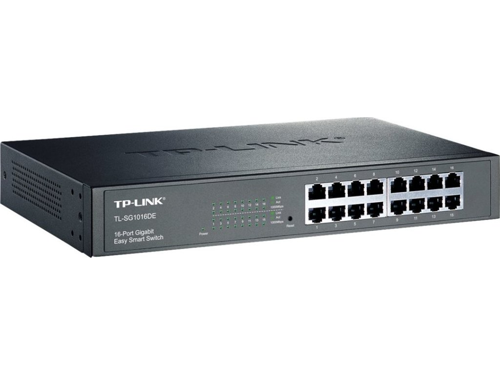 The TL-SG1016DE 16-Port Gigabit Easy Smart switch is an ideal upgrade from an unmanaged switch, designed for Small and Medium Business networks that require simple network management. Network administrators can effectively monitor traffic via Port Mirroring, Loop Prevention and Cable Diagnostics features. To optimize traffic on your business network, TL-SG1016DE offers both port and tag based QoS to keep latency-sensitive traffic moving smoothly and jitter-free. Additionally, port-based, tag-based and MTU VLAN can improve security and meet more network segmentation requirements. Moreover, with its innovative energy-efficient technology, the TL-SG1016DE can save up to 40% of power consumption, making it an eco-friendly solution for your business network.