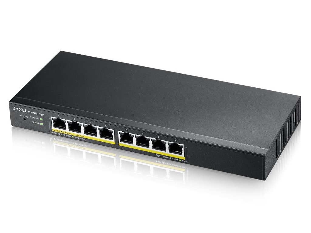 Zyxel GS1915-8EP 8-port Gigabit Web Smart PoE switch, 8x gigabit RJ45, fanless, 60W PoE budget
