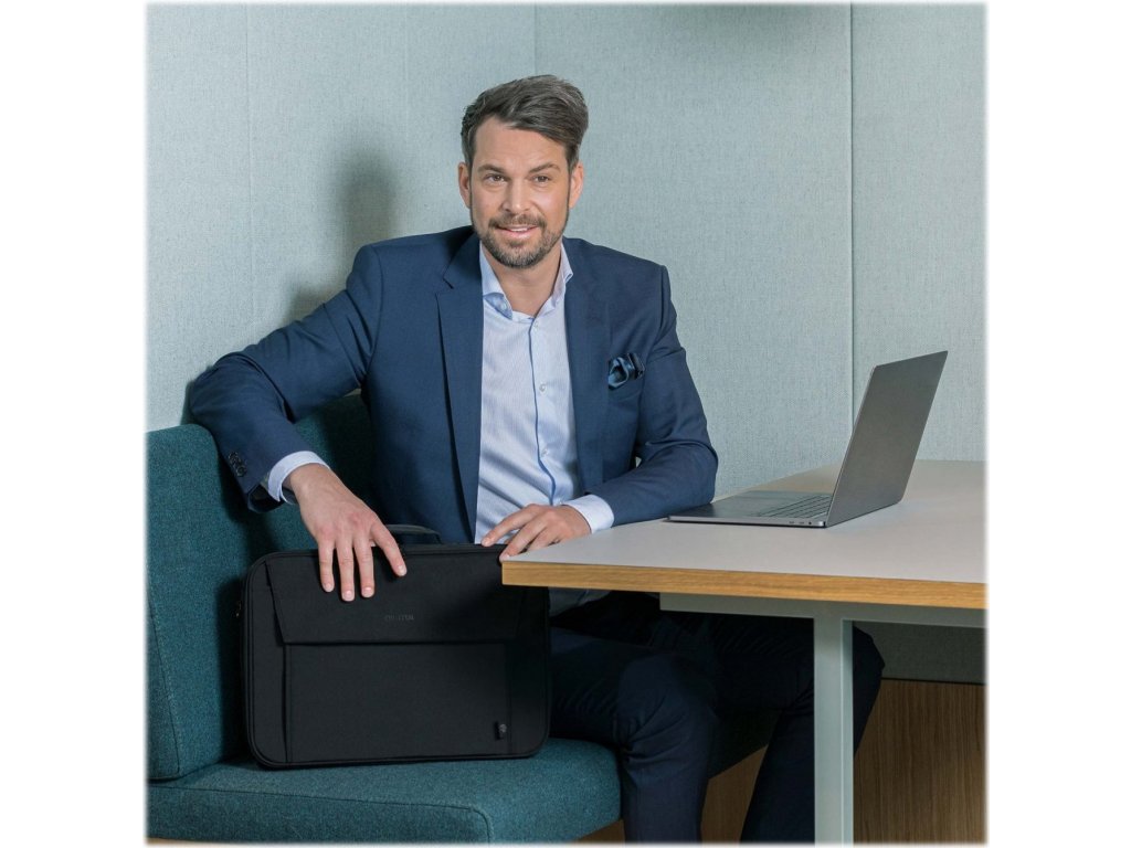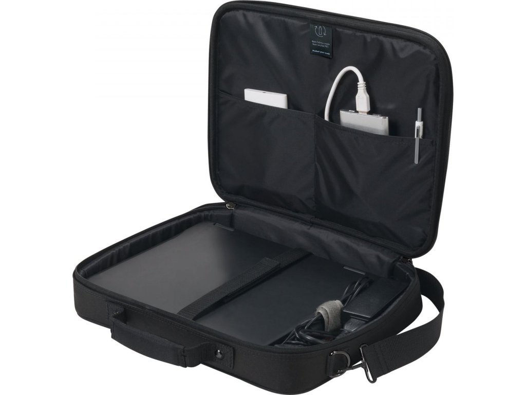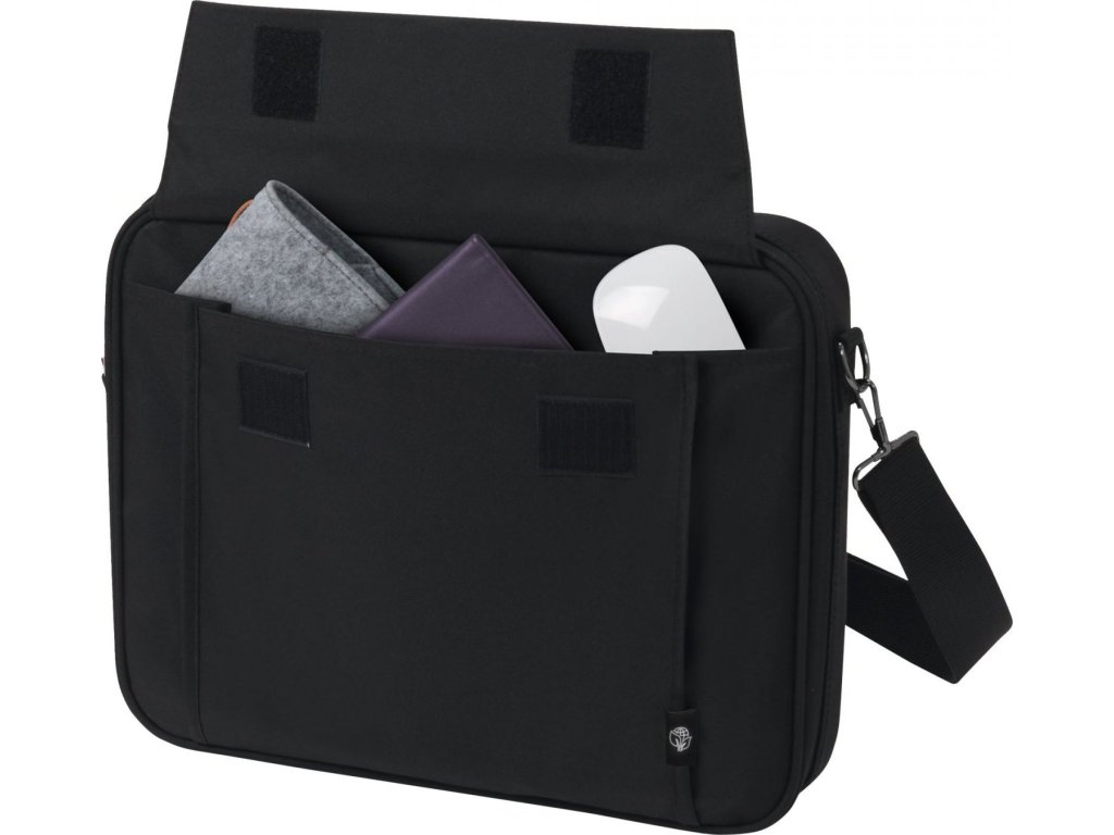Lehké pouzdro na notebook s ochranným polstrováním. Kompaktní pouzdro Eco Multi BASE nabízí ideální ochranu vašeho notebooku díky polstrované přihrádce na notebook. Pouzdro plně chrání zařízení mezi 13 a 14,1" a elastický popruh je také zajišťuje v jejich přihrádce. Eco Multi BASE zaručuje díky kovovému rámu mimořádnou stabilitu a ochranu a díky své lehké konstrukci také flexibilní mobilitu. Váš smartphone nebo jiné menší předměty, jako jsou kabely, pera nebo nabíječky, lze uložit do praktické přední kapsy, takže jsou vždy po ruce. Úchyty pouzdra usnadňují nošení a lze jej pomocí integrovaného popruhu připevnit na kufr během několika sekund. lze jej také nosit pomocí nastavitelného ramenního popruhu. Eco Multi BASE je proto ideální pro vás, pokud jste stále na cestách a chcete podpořit recyklaci PET lahví ekologickým pouzdrem.