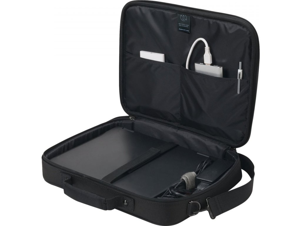 Lehké pouzdro na notebook s ochranným polstrováním. Kompaktní pouzdro Eco Multi BASE nabízí ideální ochranu vašeho notebooku díky polstrované přihrádce na notebook. Pouzdro plně chrání zařízení mezi 15 a 17,3" a elastický pásek je také zajišťuje v jejich přihrádce. Eco Multi BASE zaručuje díky kovovému rámu mimořádnou stabilitu a ochranu a díky své lehké konstrukci také flexibilní mobilitu. Váš smartphone nebo jiný menší věci, jako jsou kabely, pera nebo nabíječky, lze uložit do praktické přední kapsy, takže jsou vždy po ruce. Úchyty pouzdra usnadňují nošení a lze jej pomocí integrovaného popruhu připevnit na kufr během několika sekund. Lze jej také nosit pomocí nastavitelného ramenního popruhu. Eco Multi BASE je proto ideální pro vás, pokud jste stále na cestách a chcete podpořit recyklaci PET lahví ekologickým pouzdrem.