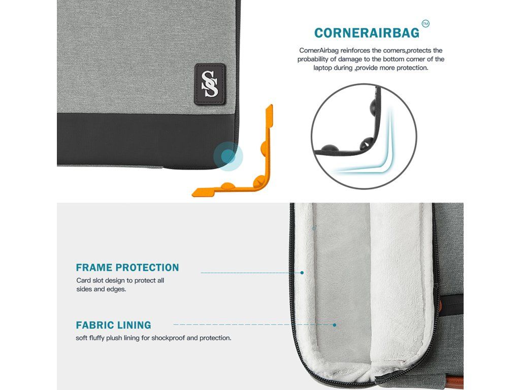 Taška je vyrobena ze tří vrstev textilie - vnější voděodolný materiál, který odolá cákancům vody, střední nárazu vzdorný materiál a vnitřní měkký materiál. Díky těmto třem textiliím máte jistotu, že je vaše zařízení v bezpečí za všech okolností. Rohy brašny jsou navíc opatřeny ochranou rohů zařízení.