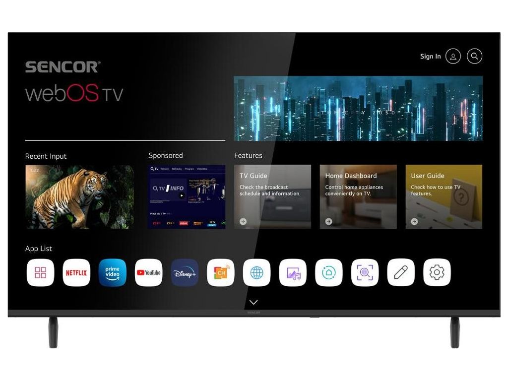 3× HDMI CEC (1 × ARC), AV in, RJ45, optický výstup, 2× USB 2.0 (5 V ⎓ 0,5 A),slúchadlový výstup 3,5 mm Jack
