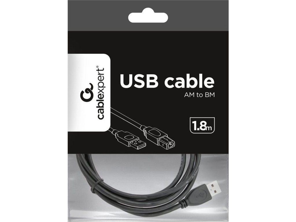 GEMBIRD Kabel USB 2.0 A-B propojovací 1,8m Professional (černý, zlacené kontakty)