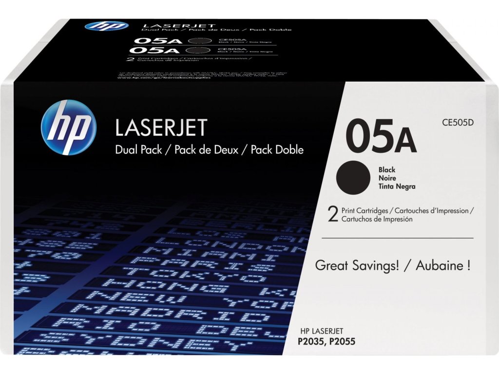 HP 05A Black LJ Toner Cart, 2-pack, CE505D (2,300 / 2,300 pages)