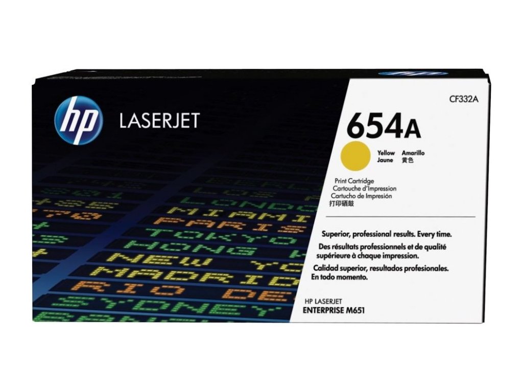 HP 654A Yellow LJ Toner Cart, CF332A (15,000 pages)