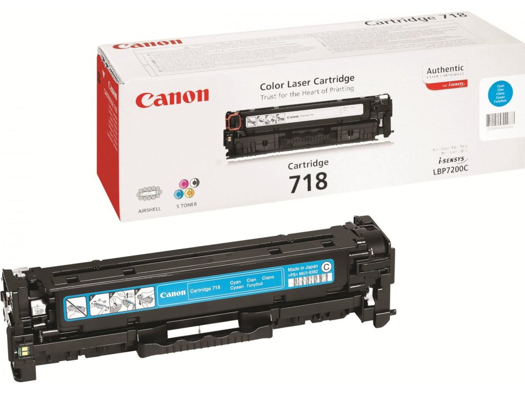Toner Canon CRG-718 Cyan je určen pro vybrané barevné laserové tiskárny Canon. U tiskáren je zajištěn vysoce kvalitní výstup v rozlišení 600×600 dpi, jež lze zvýšit na ekvivalentní rozlišení 9600×600 dpi pomocí funkce automatického zdokonalení obrazu (AIR – Automatic Image Refinement). Toner CRG-718 cyan obsahuje azurovou barvu a udává se pro něj výdrž až cca 2900 stránek, při standardním 5% pokrytí.
