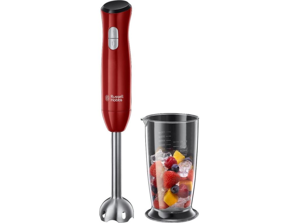 * tyčový mixér DESIRE* 500 W* 12000 ot/min* 2 rychlosti a pulsace* odnímatelná nerezová mixovací noha s nerezovými čepelemi* pohár s kapacitou 0,5 l je součástí* pohár a mixovací nohu je možné umývat v myčce nádobí* stylový červený design
